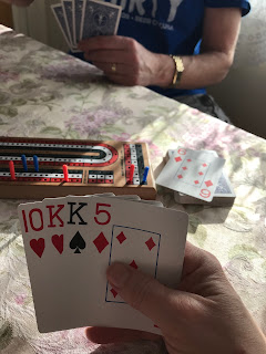 One of our habits is to finish dinner and then play a game of cribbage. We usually take turns winning. Dave often helps me catch a couple points I missed, and once in a great while, I'll help him. The game is all in fun, even though we keep track of who won the last game.